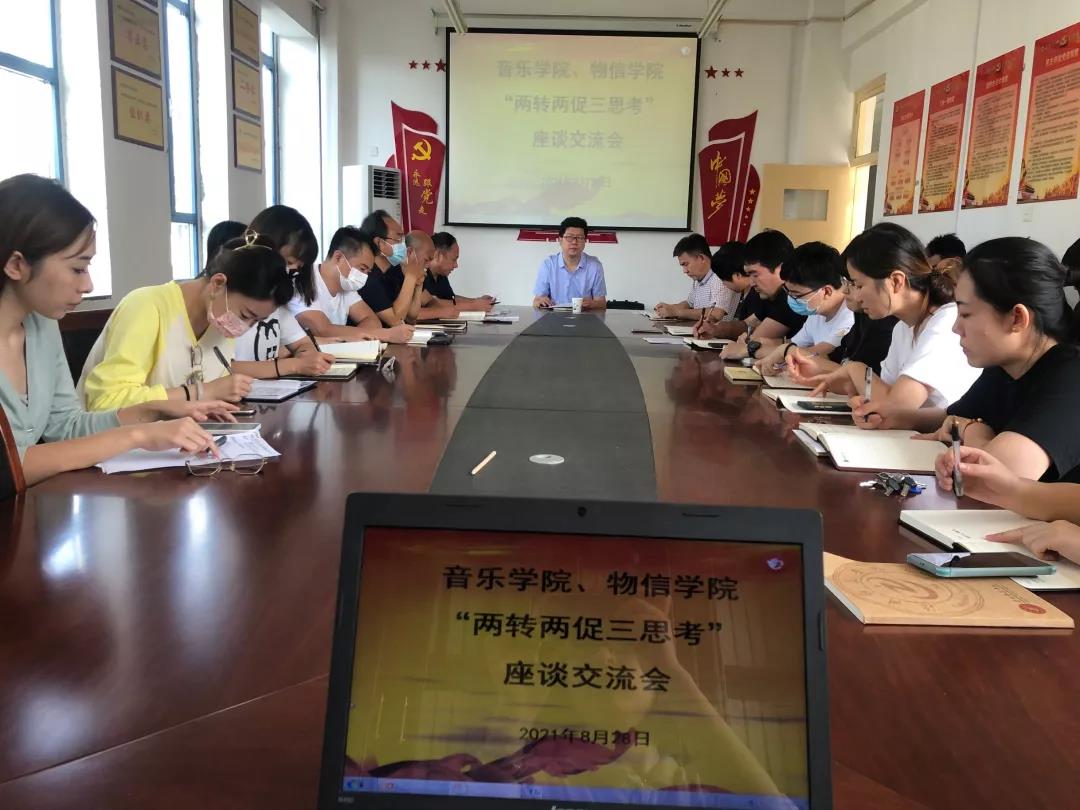 为深入贯彻落实学校党委在全校开展“转观念促发展,转作风促落实,对沧州师院‘怎么看、怎么办、怎么干’思想大讨论实干大行动”工作要求,8月29日下午,音乐学院、物信学院在物信学院会议室开展“两转两促三思考”座谈交流会。校党委常委、副校长彭学君出席并发表讲话。