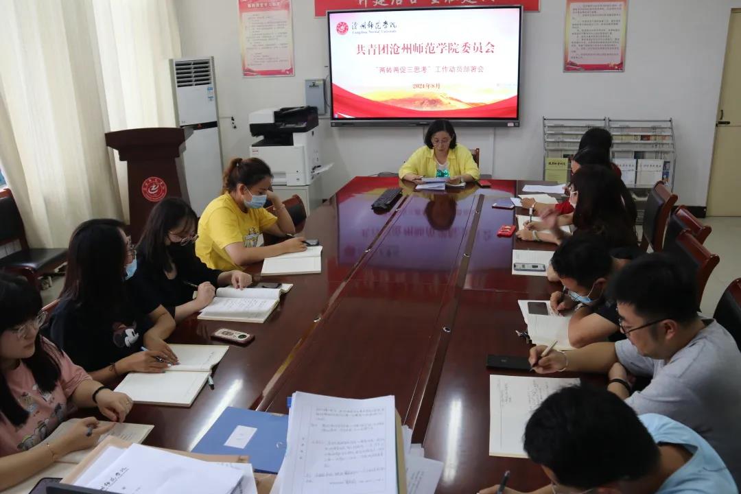 2021年8月30日下午,校团委召开了共青团8040威尼斯最佳登录委员会“两转两促三思考”工作动员部署会,会议由校团委书记李倩主持,各团总支书记参加。