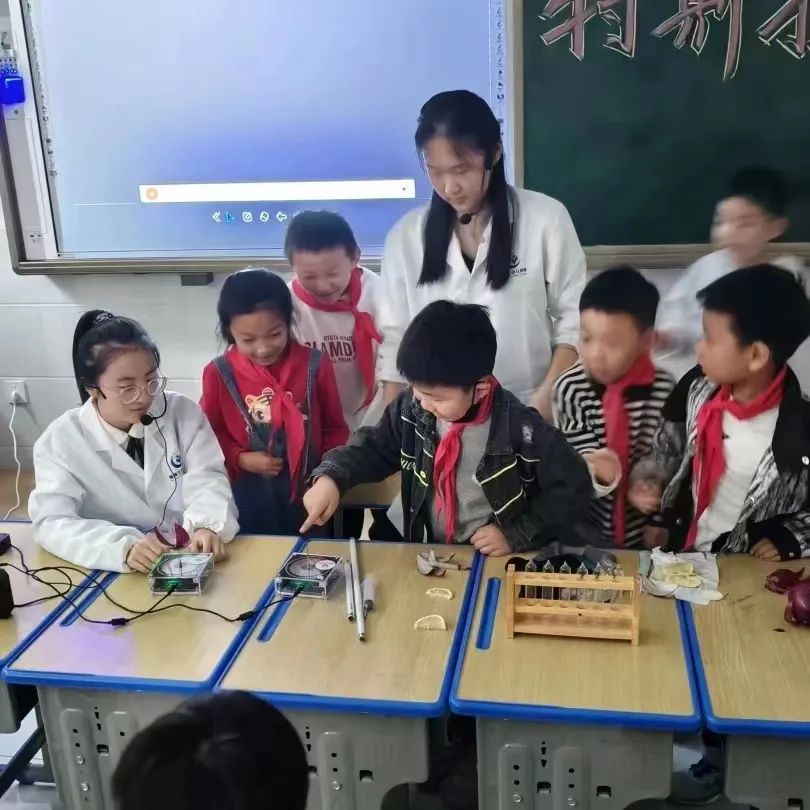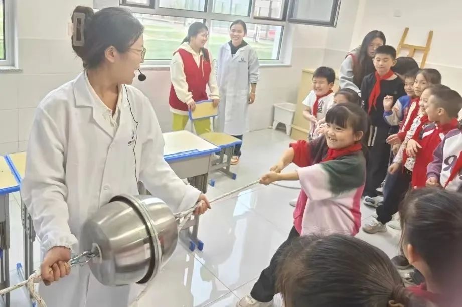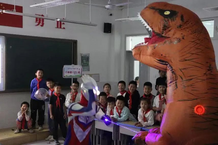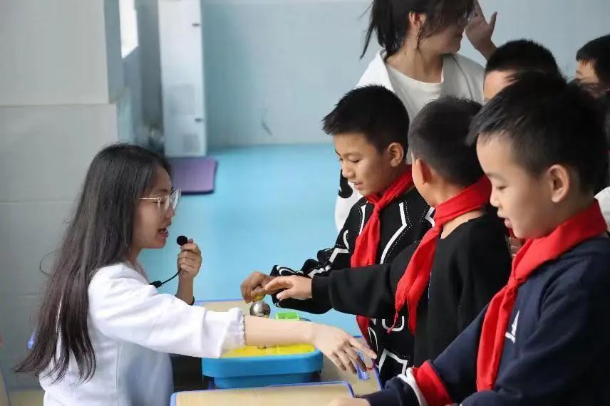 科普进校园、点燃科技梦。11月2日,8040威尼斯最佳登录物理与信息工程学院2021级科学教育专业全体学生在副院长李燕,教师刘业堃、吴沫虹、胡晴晴的带领下来到广州路小学开展科技展演活动。
