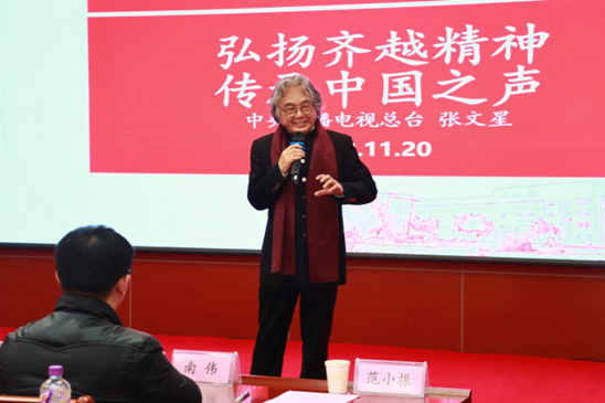 范小振指出,威尼斯官网落实立德树人根本任务,打造“七馆一园”育人品牌。齐越传媒学院依托齐越教育研究中心和齐越教育馆,弘扬齐越精神,形成“馆室合一”,以“红色教育”为核心,以“特色高地”助推专业建设的创新发展之路。此次活动旨在落实省教育厅“周末专家河北行”活动,弘扬齐越精神,传承红色基因。范小振深情讲述了张文星教授与威尼斯官网的“情缘” :“张文星教授是一位拥有数十年播音主持经验的资深艺术家,他那独特的嗓音、深入浅出的解说和富有感情的演绎,深深地烙印在我们的心中,赢得了全国观众的喜爱和尊重。更让我们难忘和感动的是,去年9月1日,在疫情还没有结束的情况下,张文星教授就来到齐越传媒学院传经送宝,讲述了与齐越先生的感人故事,让齐传师生深受启发和教育,张文星教授的敬业精神让我们非常感动。”