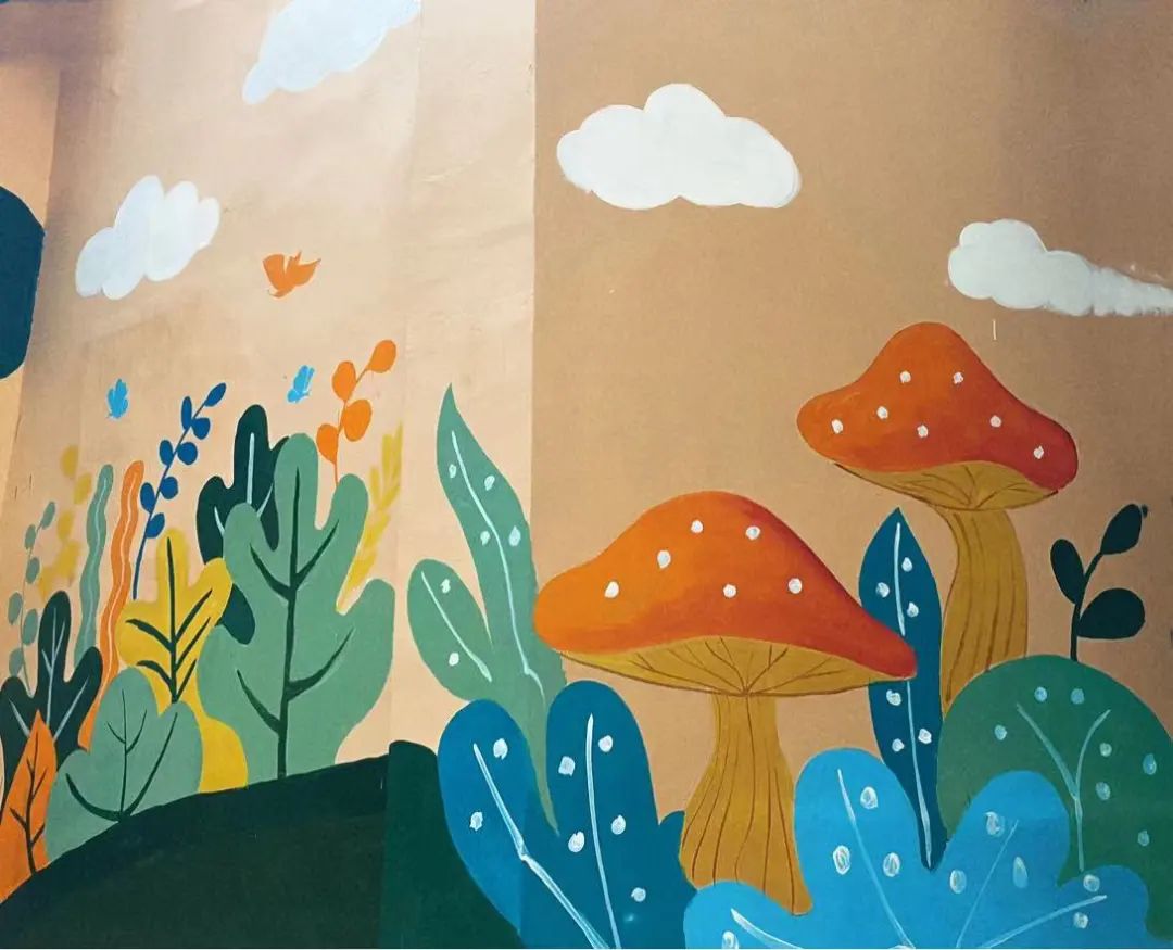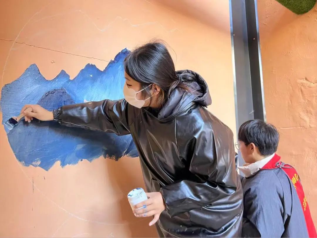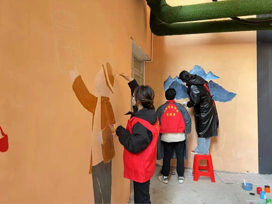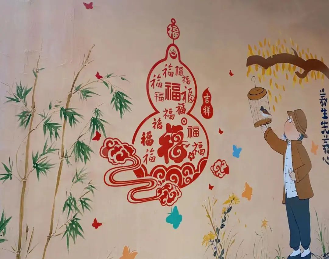 墙绘过程中志愿者们发挥专业特长,将中国优秀传统美德绘制在墙面上,把康养中心的白墙变成会说话的“文化墙“”美德墙”,成为一道亮丽的风景线。沉浸式创作的过程中,队员们的衣服、鞋帽上不免沾上了许多颜料,但他们的脸上却洋溢着灿烂的笑容。