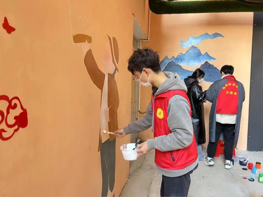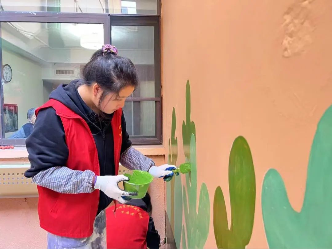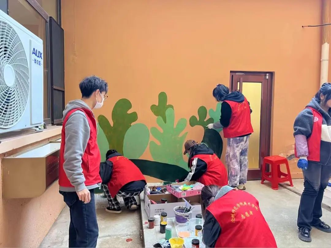 11月19日,美术学院团总支书记曾凡超带领党员、积极分子组成志愿者小队,走进沧州市中心医院医疗集团康养集团开展“关爱老人,悦绘幸福”主题党日活动。师生在康养中心画上暖心的墙绘,听老党员们传授红色故事,传承革命精神。