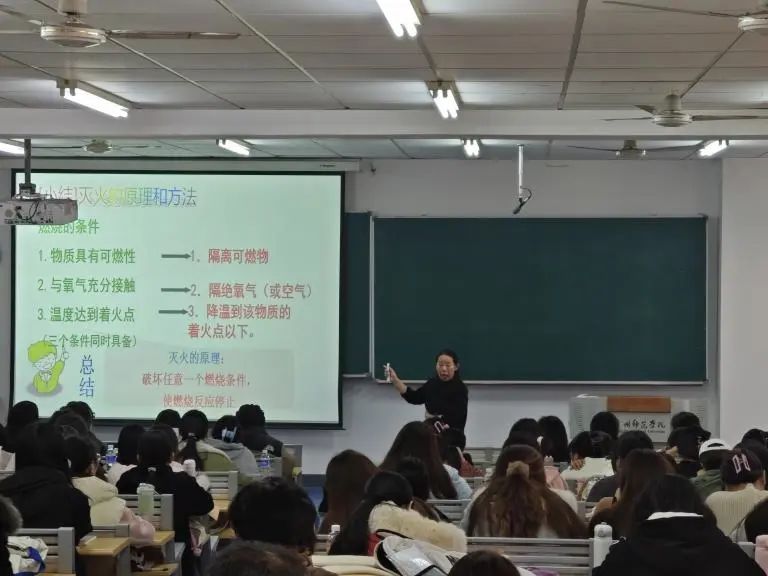 赵娜首先介绍了“双减”政策下,打造初中化学高效课堂的实施策略;然后以课例《燃烧和灭火》为载体,细致阐述了新课程理念下进行化学高效课堂教学的实施路径及落地核心素养的有效途径;最后在互动环节,解答了学生在实际教学中遇到的困惑及问题,使师生们深受启发。她的讲座既有理论的深度,又有实例的剖析与讲解,在教学设计的科学性、情境创设的新颖性、探究活动的实效性,以及化学实验呈现方式、学生学习方式和教学评价方式多样化等方面,均进行了科学示范。
