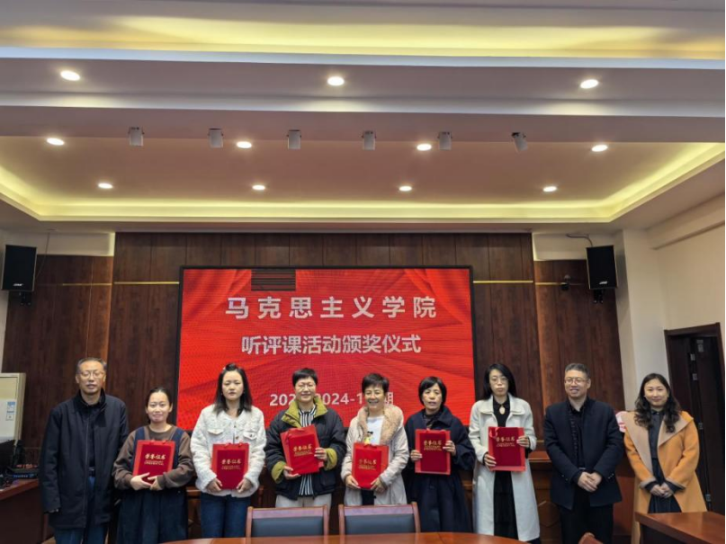 自活动开展以来,全体思政课教师都“摩拳擦掌”,从选题、试讲、到登台亮相,各环节精心准备,有序开展。通过五场集体听课、评课,最终评选出7名优秀获奖教师,并于11月24日下午举行颁奖仪式。院长李树旗、党总支书记顾大鹏为获奖教师颁发获奖证书。副院长刘云鹤主持。