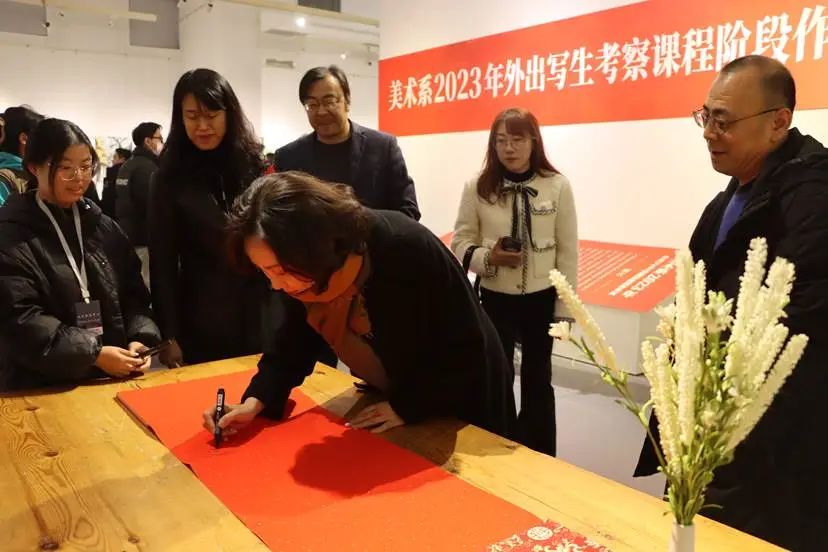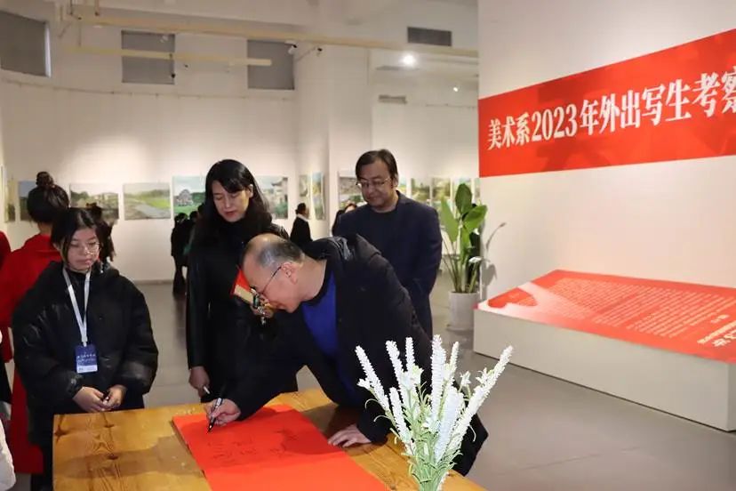 在热烈的掌声中,范小振宣布美术学院“2023年外出写生考察课程阶段作业展”开幕。