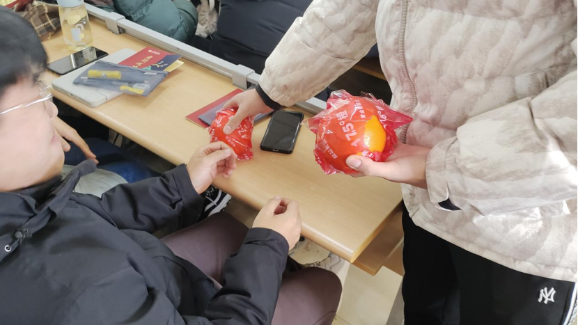 分享会上,同学们还收到了学校精心准备的考研“大礼包”,包括考试用具以及水果,希望同学们考试顺利。