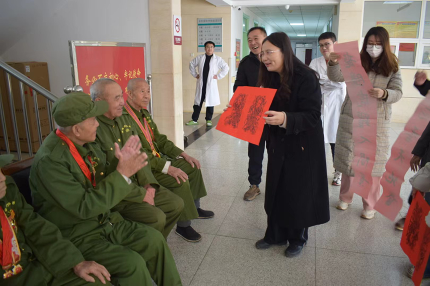 2月1日,美术学院师生联合党支部与党政办公室党支部的师生代表带着慰问品,来到沧州市荣复军人疗养院开展慰问。党政办公室副主任陈秀才带队,党政办公室教师李志豪、王心宇,美术学院副院长张倩、美术学院教师张晓晴和学生代表参加。师生为老荣军们送来冬日暖心的慰问和祝福,在现场上了一节特殊的党课。