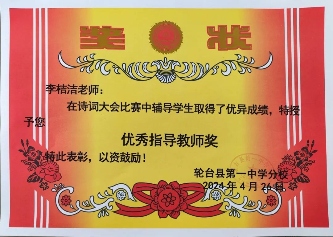 除检查工作之外,我还担任着本届“诗词大赛”的指导老师,与刘刚老师、李小红老师带领本校的五名学生参加县里举办的古诗词比赛。虽然九年级的学生已进入复习阶段,但对于初中乃至小学的古诗词还未能做到全部背诵。经与老师们协商,决定从基础入手,初赛阶段,李小红老师整理了中小学要求必背古诗词,我跟进学生背诵。