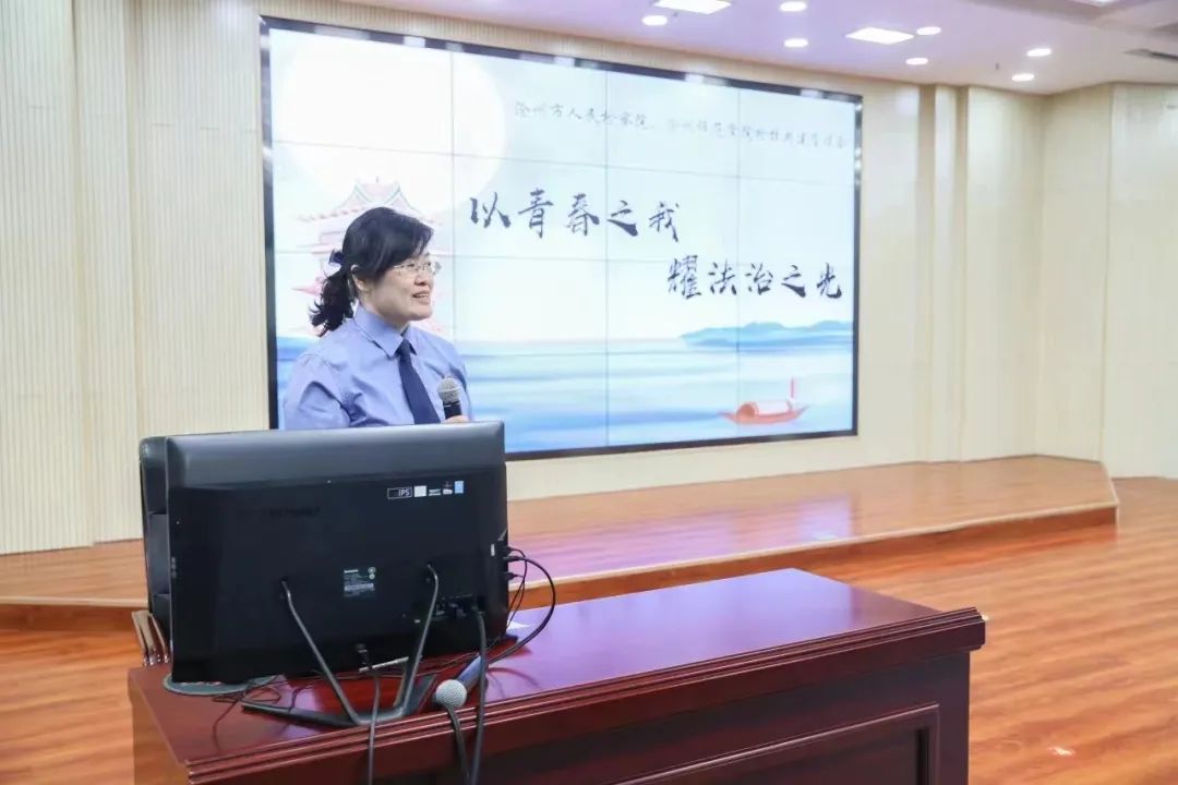 活动中,沧州市人民检察院第八检察部副主任杨晓菲结合自己的办案经历作了题为“以青春之我,耀法治之光”的讲座,并带领政史学院干部师生来到教育展厅,从明确司法机关、人民政府等单位责任,加强自我、家庭、学校、社会四位一体保护等角度针对青少年犯罪的相关情况进行了讲解。