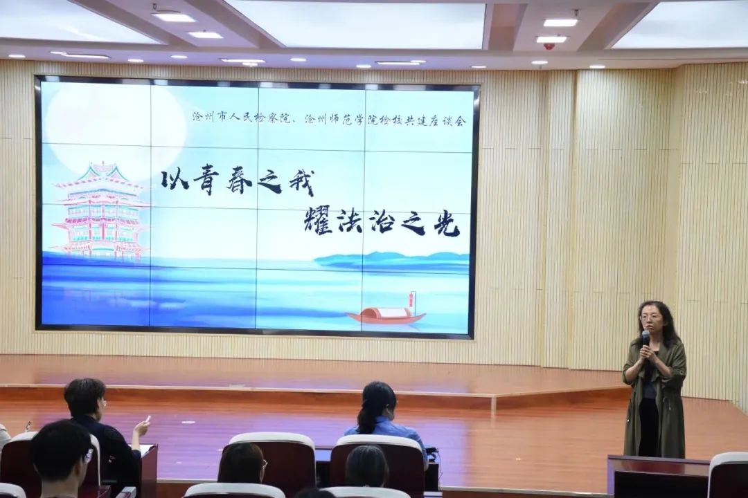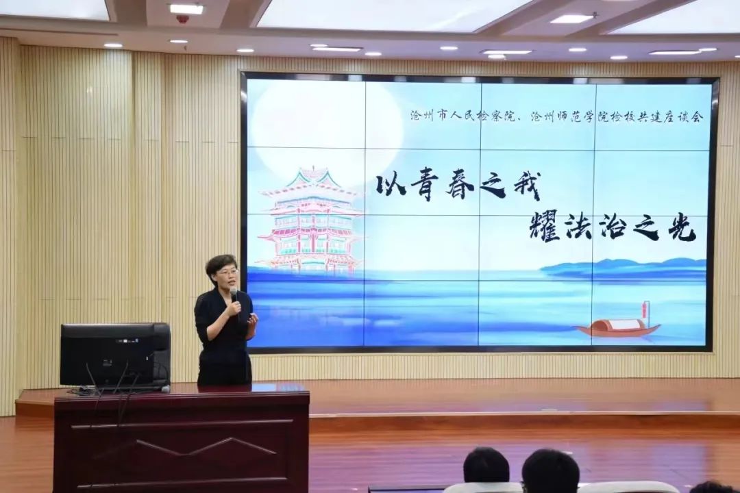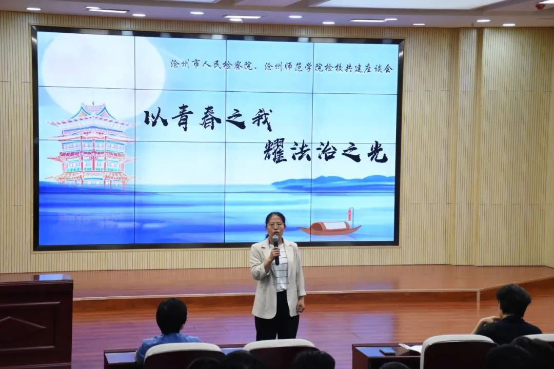沧州市人民检察院第八检察部主任张君慧带领该部门工作人员与威尼斯官网干部师生就学生实习实训、检校合作等问题进行交流。
