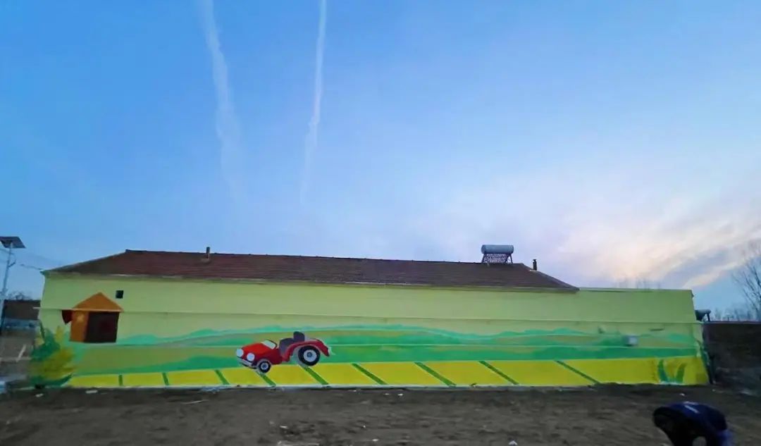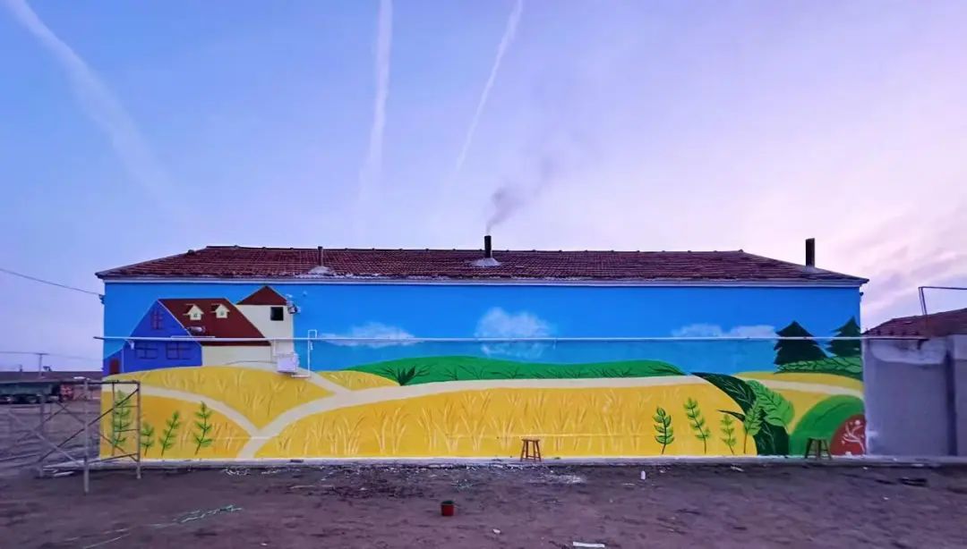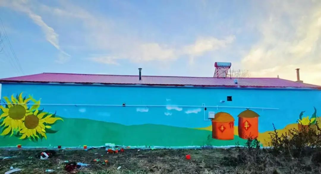 经过8个小时的紧张工作,志愿者们成功完成了5幅4*15米的主题墙绘。墙绘作品以“美丽乡村”为主题,内容涵盖了田园风光、乡村文化、民族团结等多个方面,不仅展现了乡村的自然美景和人文特色,也传递了积极向上、和谐共生的乡村发展理念。