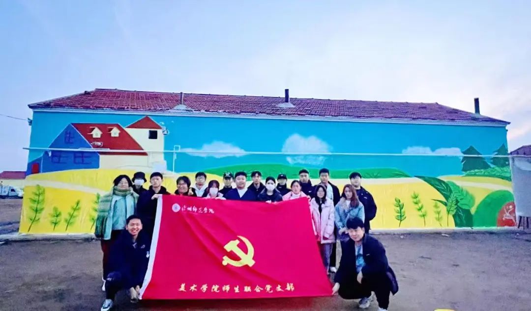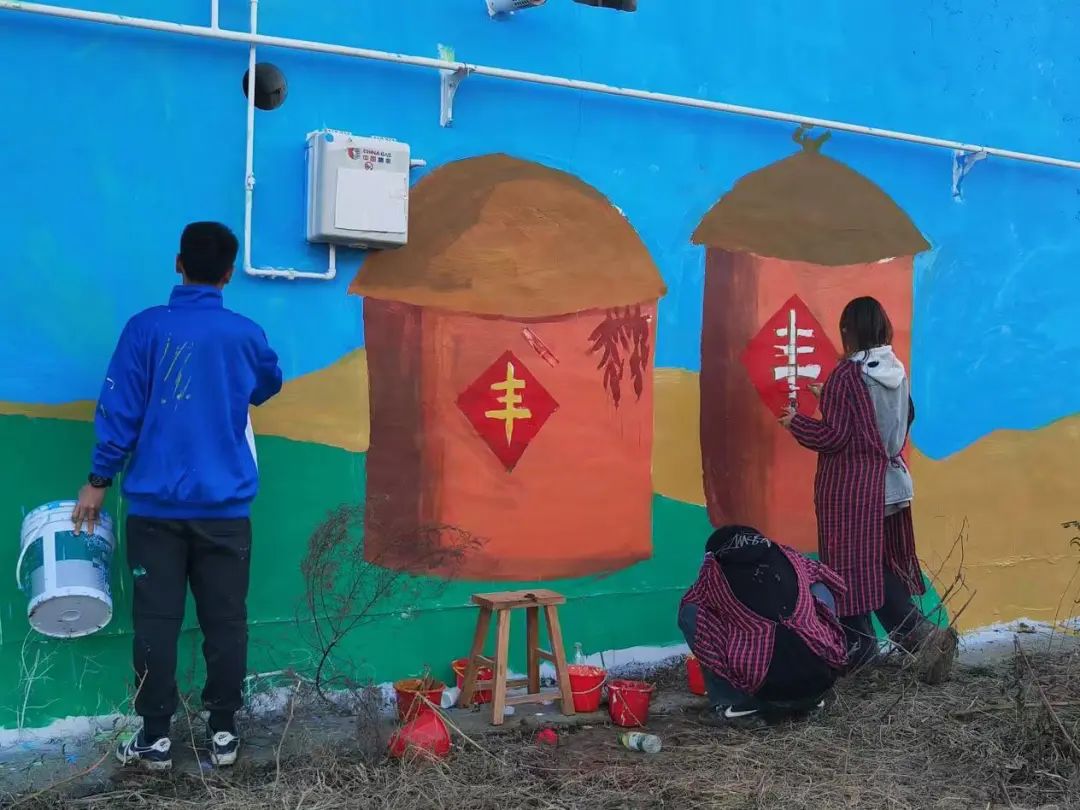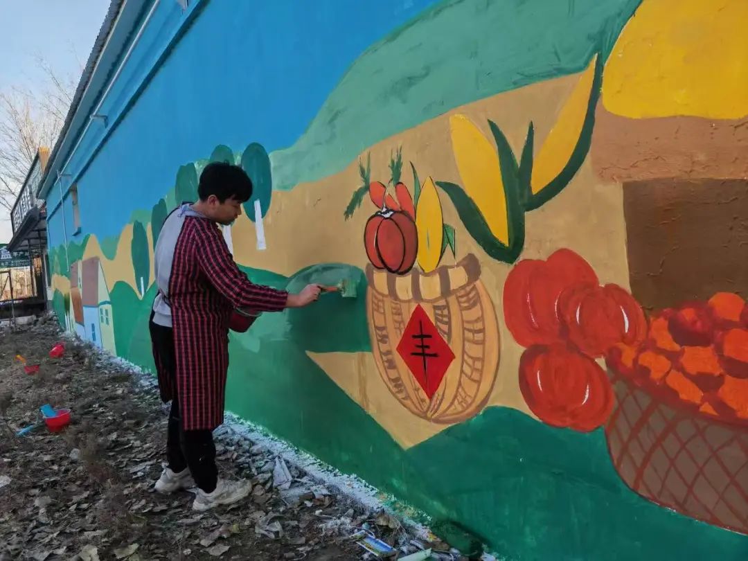 近日,8040威尼斯最佳登录美术学院师生联合党支部“聚绘WE来”志愿服务队积极响应沧州市孟村回族自治县团县委的委托,赴孟村回族自治县大堤东村开展公益墙绘活动。此次活动旨在通过墙绘艺术,为美丽乡村建设增添一抹亮色,提升乡村文化氛围。