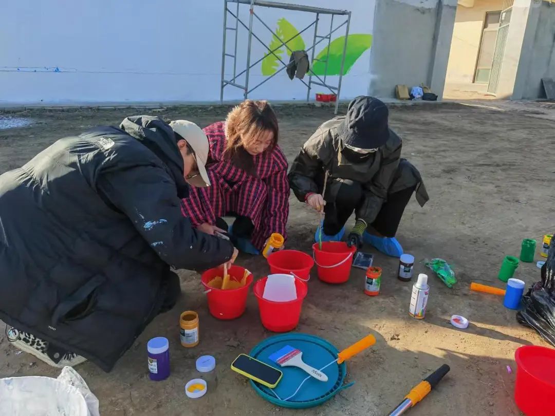 抵达大堤东村后,志愿者们迅速投入到紧张的墙绘工作中。他们分工明确,有的负责勾勒线条,有的负责调色上色,还有的负责现场协调。在曾凡超老师的带领下,志愿者们充分发挥自己的专业特长,将一幅幅生动美丽的墙绘作品呈现在村民们的眼前。