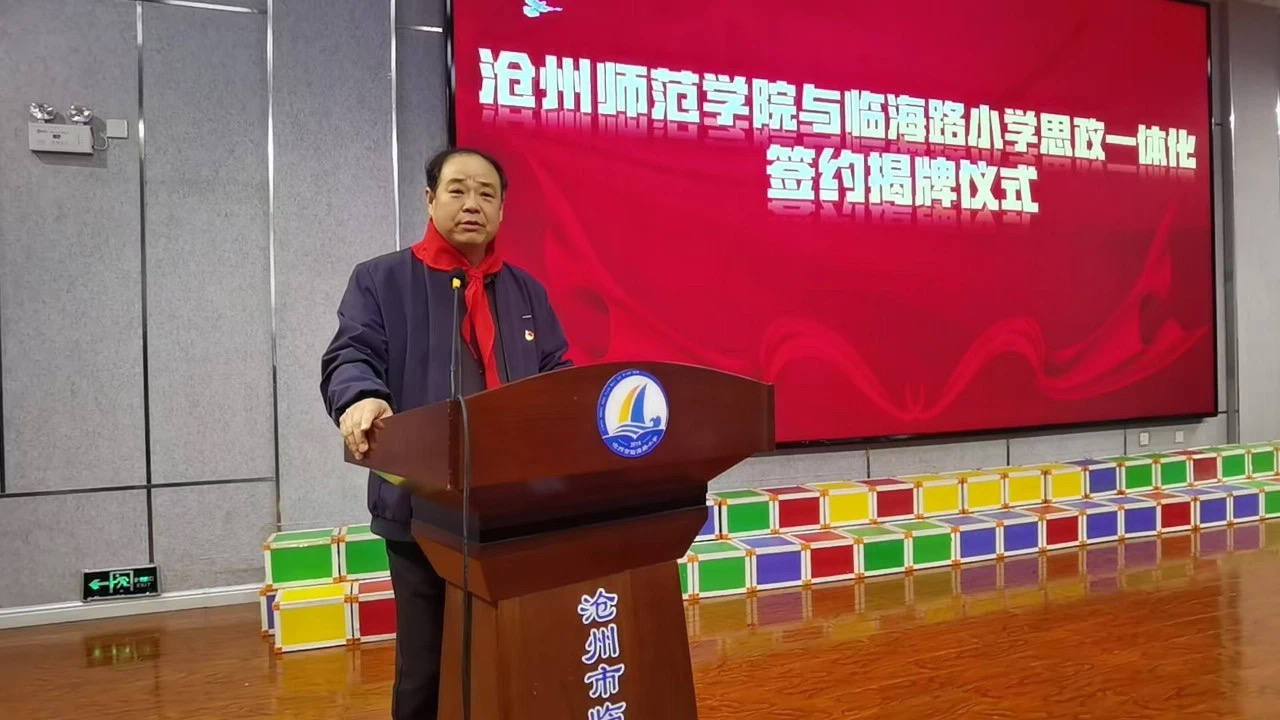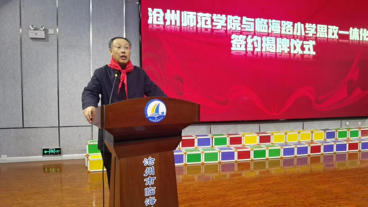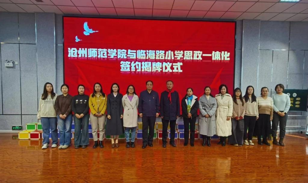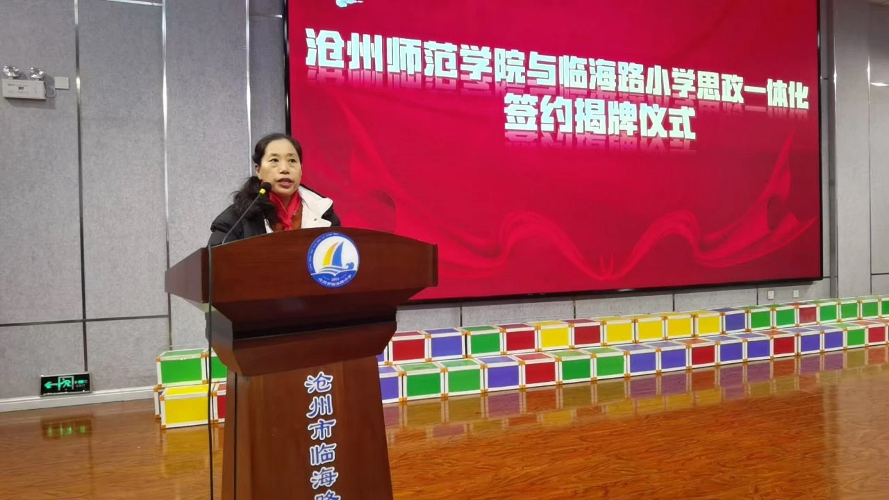 为深入贯彻习近平总书记对学校思政课建设的重要指示精神,落实立德树人根本任务,深入推进大中小学思想政治教育一体化建设,推动大中小学思想政治教育紧密衔接、相互配合,12月13日,马克思主义学院与运河区临海路小学合作共建授牌签约仪式在临海路小学举行。运河区教文体局副局长吴素臻,运河区青少年活动中心主任王承丽,威尼斯官网马克思主义学院院长李树旗、副院长刘云鹤、思政课教师代表,临海路小学党支部书记、校长吴忠权及师生代表参加。