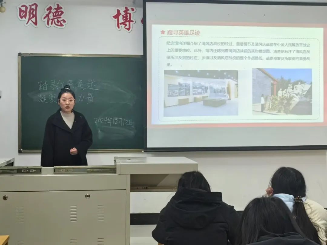 12月12日一13日,马克思主义学习小组成员走进各班团支部,围绕爱国主义教育基地寻访经历,开展国家公祭日主题团课。学员们以牢记抗日战争历史,弘扬伟大抗战精神为主题展开宣讲,激励同学们克服一切艰难险阻、为实现中华民族伟大复兴而不懈奋斗。