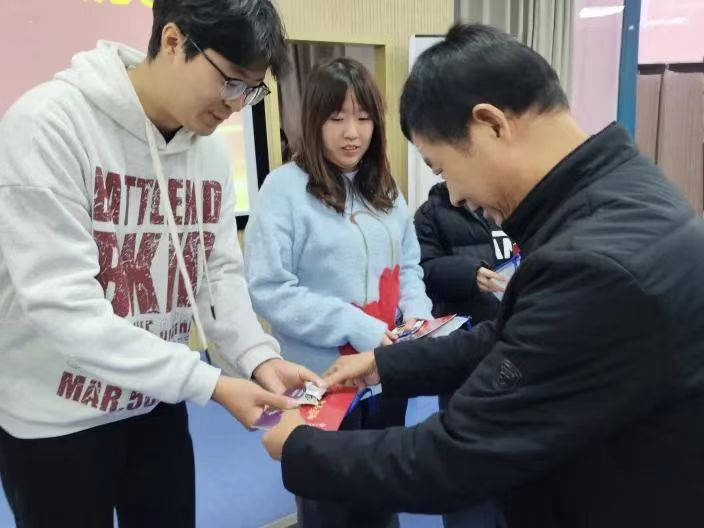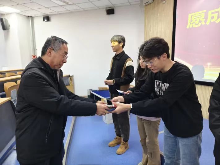 会上,学院领导亲切询问同学们近期的学习生活状况,他们提到考研不仅是一场知识的较量,更是意志和毅力的考验,希望全院备战学子自信迎考、沉着应考、顺利赢考,相信凭借同学们的坚韧与毅力,一定能够在考研的道路上克服重重困难,无论结果如何,这段经历都将成为人生旅途中宝贵的财富。 随后,王书贵、潘春晖将满载着学校关怀与期望的“考研加油包”送给了在场的每一位考研学子,祝愿同学们旗开得胜、马到成功。同学们收到礼包和祝福后倍受鼓舞,纷纷表示将全力以赴投入最后的冲刺之中,坚定信心与决心,一“研”为定,一战成硕。