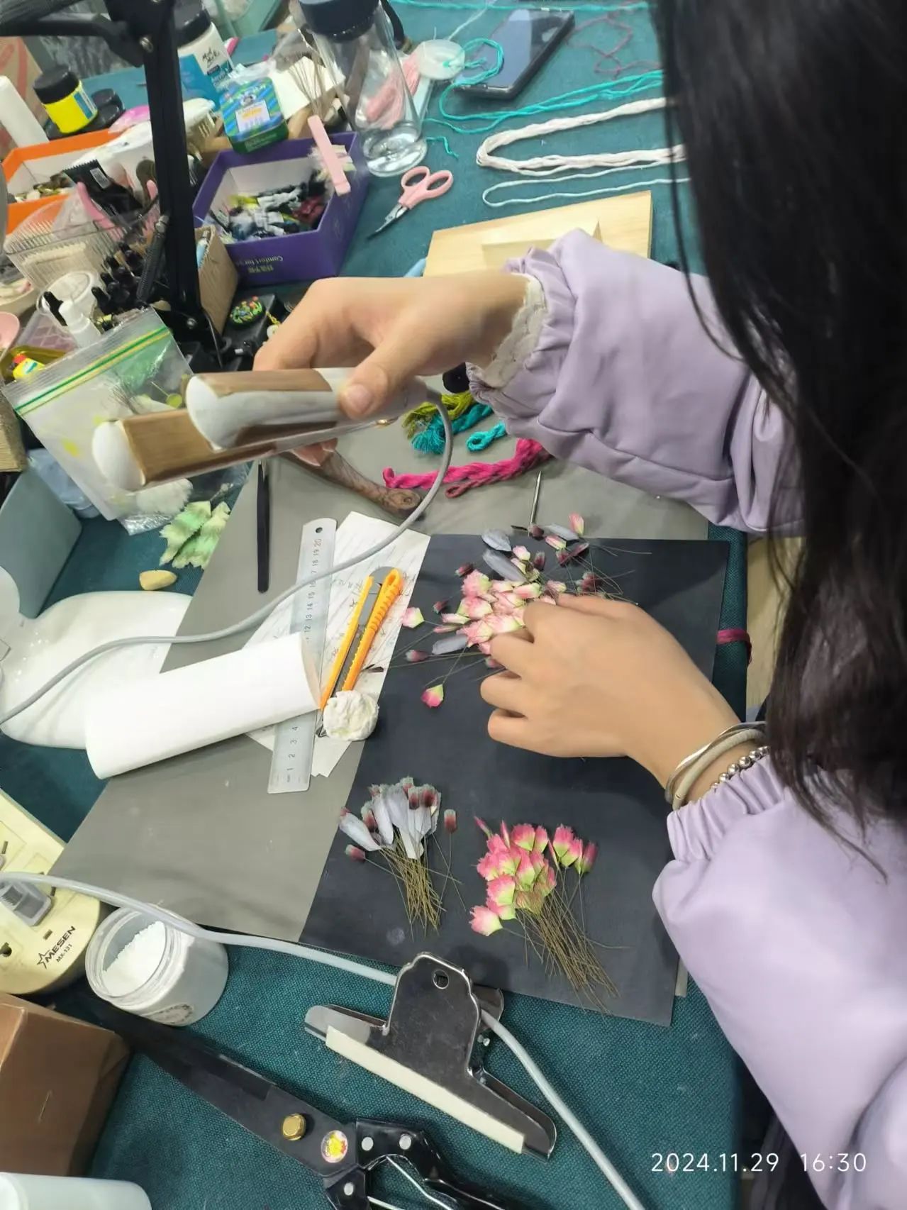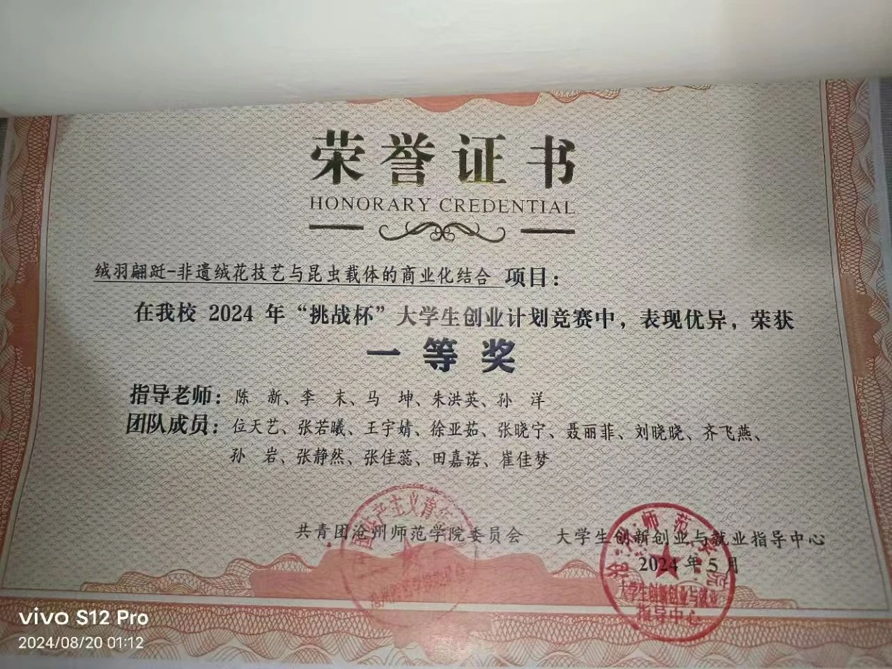 据了解,齐飞燕等同学团队申报的“非遗绒花与昆虫标本的商业化”项目是一项将传统文化与昆虫标本相结合的项目。在2023年10月,该项目还申请了2023年度校内大学生科技创新能力培育项目立项,并在2024年10月完成结项。在此期间,该项目还荣获挑战杯一等奖。团队成员多次抽出自己的课余时间前往育红小学进行深入学习和交流,参与制作的项目作品《蝶海逐浪》也得到了国家动物博物馆的高度认可并被永久收录,新华社、搜狐网等多家权威媒体对其进行了广泛报道,进一步扩大了项目的社会影响力。这些成就共同铸就了项目的辉煌篇章,同时也激励着团队成员在未来继续追求卓越。