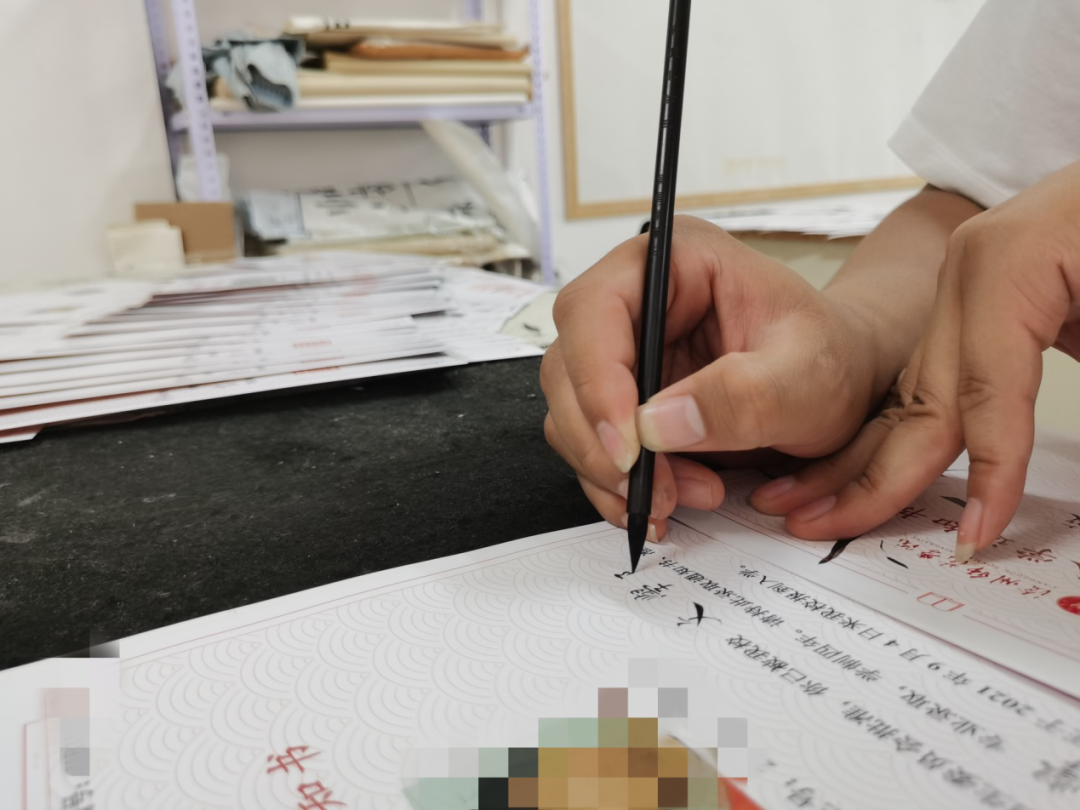 手落纸墨,笔写传情。2021级新生还未进校门,师院就开启了“花式宠爱”模式,为表达对新生的欢迎和祝福,今年威尼斯官网的录取通知书特邀文学院书法学专业陈国成、张献成等教师手写。他们以书法作品的标准,把墨香转化为祝福,为未曾谋面的大一新生送去独特的见面礼。“一笔一画将新生名字写在录取通知书上时,意味着这名学生的名字已印在了师院的心中。”书法学专业教师陈国成认为,这是一种与新生隔空对话的仪式感,“替每一个孩子高兴,也希望他们在大学校园里茁壮成长。”