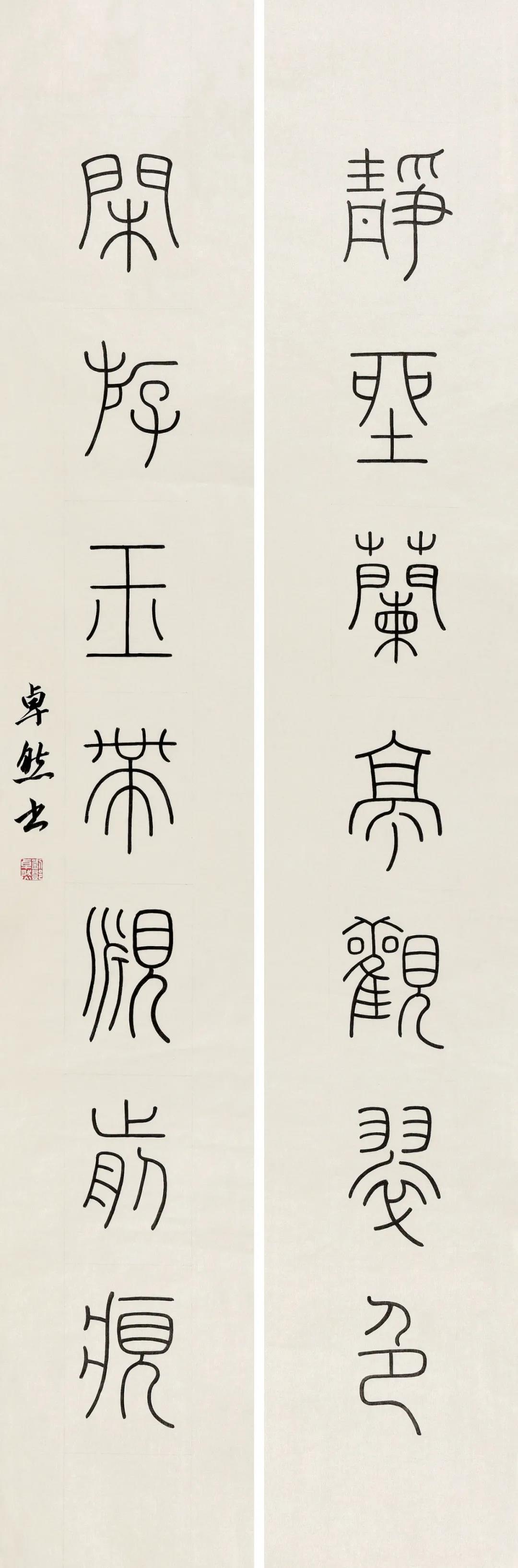 刘邓卓然 篆书静坐闲游联