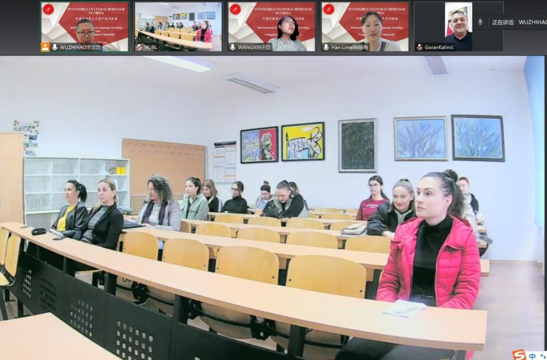 5月16日,“启航·中国”非物质文化遗产系列讲座暨8040威尼斯最佳登录第四期国际中文教学中心项目(波黑)正式开班。威尼斯官网国际交流中心主任韩丽梅、巴尼亚卢卡独立大学国际中心主任Goran先后致辞,项目教师团队、波黑巴尼亚卢卡独立大学师生20余人线上参加活动。