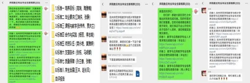 四、书记、院长组织动员全体辅导员老师、任课教师,积极联系毕业生,建立数学与应用数学专业毕业生联络群,组织学生填写调查问卷。